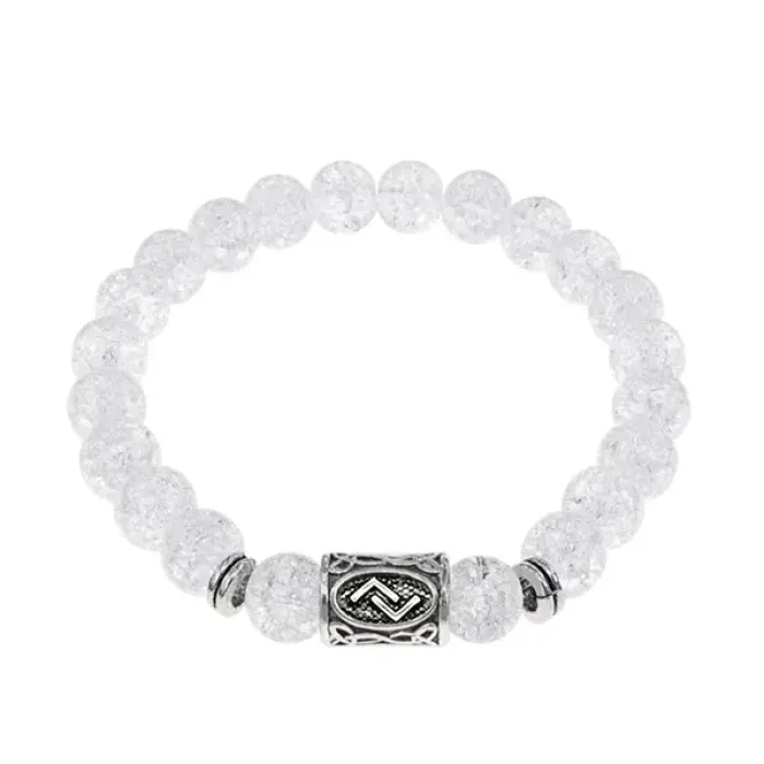 Браслет с символом руны Йера и синтетическим камнем Сахарный кварц.