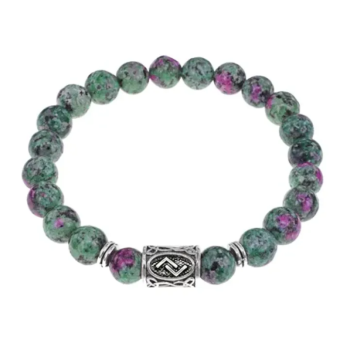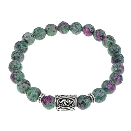 Браслет с руной Йера и синтетическим камнем Цоизит BSRD-07-22