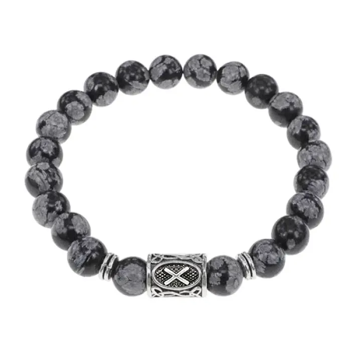 Стрейч-браслет с руной Гебо и натуральным камнем снежный обсидиан.