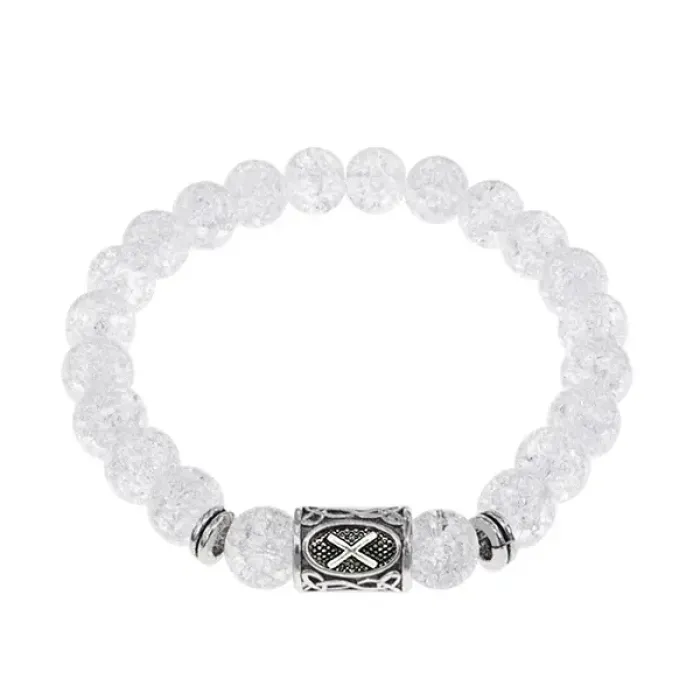 Рунический стрейч-браслет, выполненный из качественного синтетического камня Сахарный кварц, символизирует гармонию и партнерство. Внутренний диаметр браслета составляет примерно 5,4 см (в диапазоне от 5,2 до 5,6 см), а диаметр бусин из камня — 8 мм.