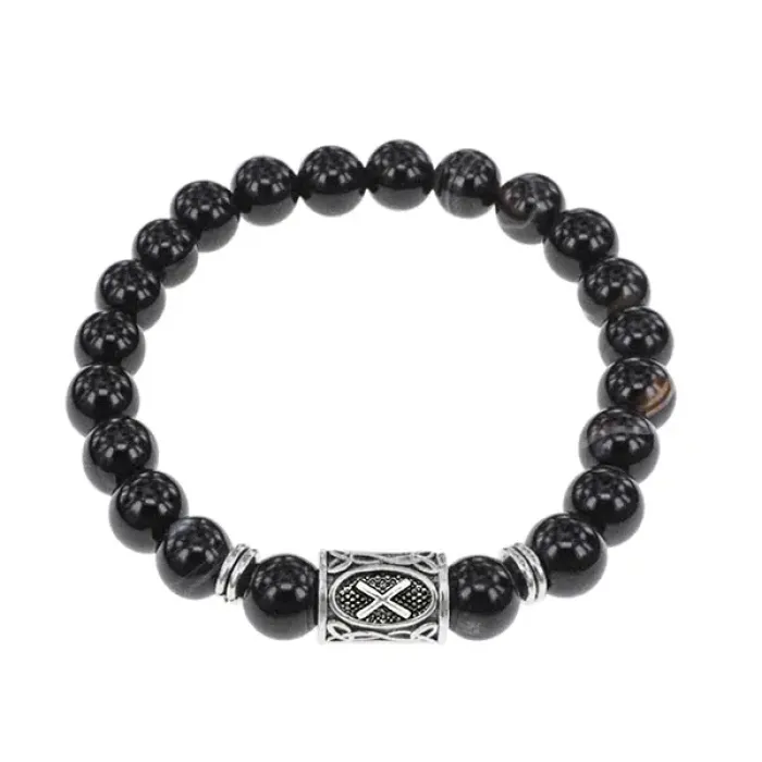 Браслет с руной Гебо и нат.камнем Черный агат BSRD-08-23