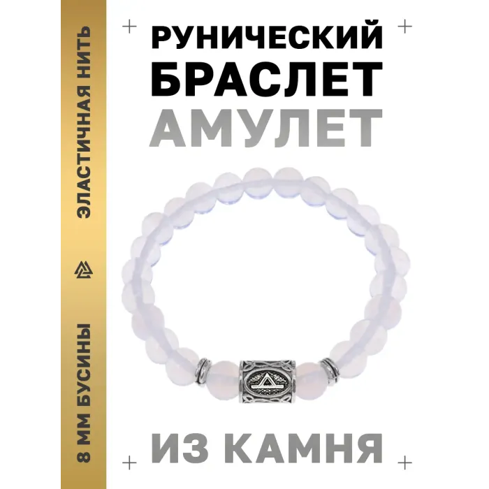 Браслет с руной Турисаз и синтетическим камнем Лунный камень.