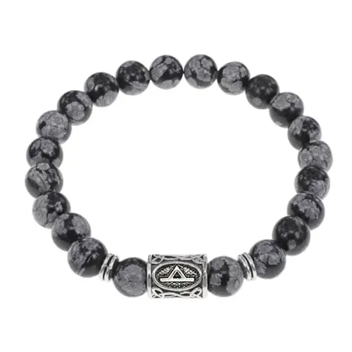 Браслет с руной Турисаз и нат.камнем Снежный обсидиан