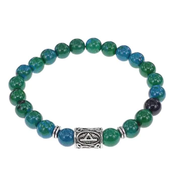 Браслет с руной Турисаз и синт. камнем Хризоколла BSRD-09-21
