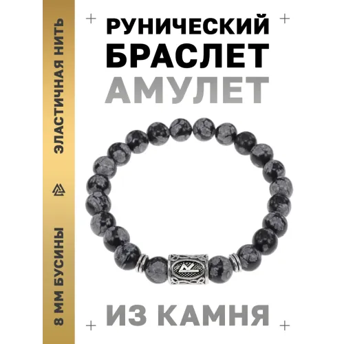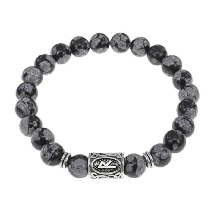Стрейч-браслет с руной Райдо и натуральным камнем снежный обсидиан.