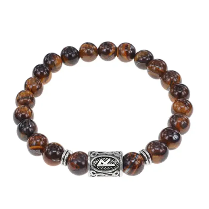 Стрейч-браслет с руной Райдо и бусинами из натурального камня Тигровый глаз.