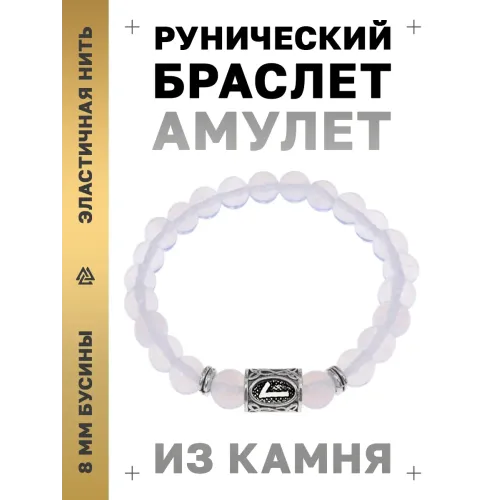 Браслет с руной Лагуз и синт.камнем Лунный камень BSRD-11-11
