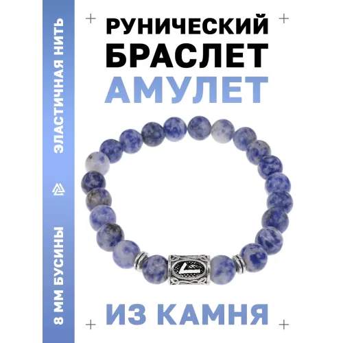 Браслет-стрейч с натуральным камнем содалит и символом руны Лагуз.