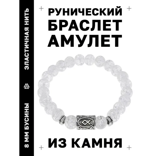 Браслет с руной Одал и синт. камнем Сахарный кварц BSRD-12-16