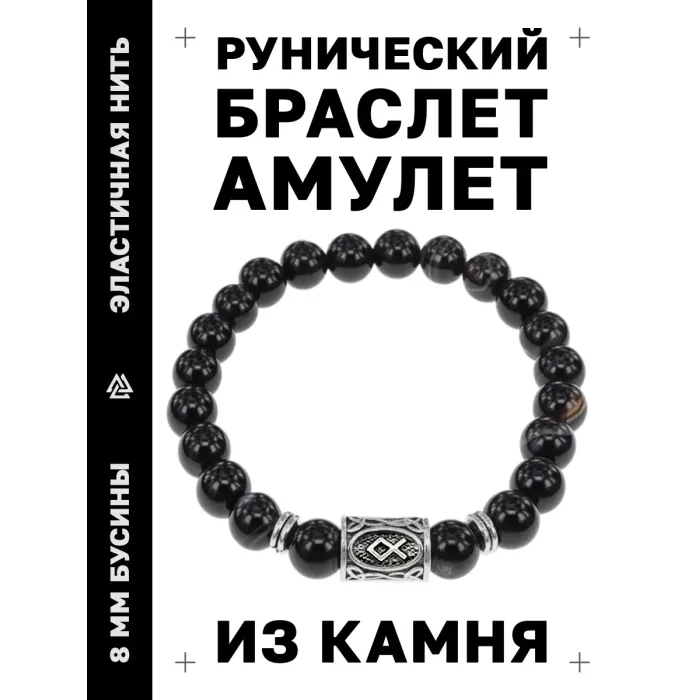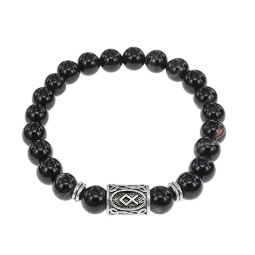 Браслет с руной Одал и нат.камнем Черный агат BSRD-12-23