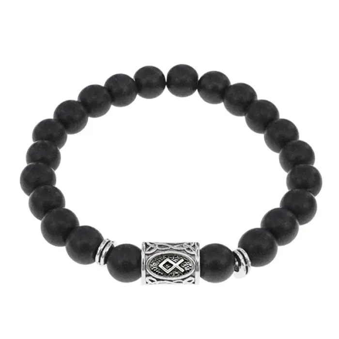 Браслет с руной Одал и синтетическим камнем шунгит.