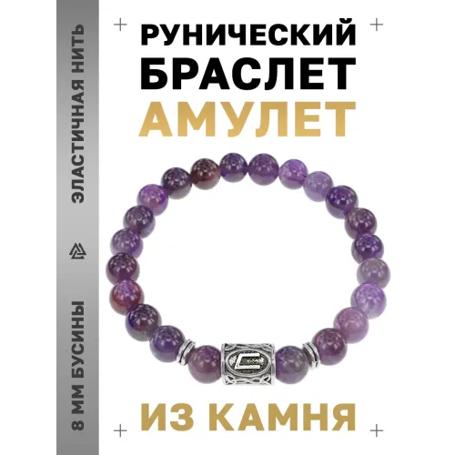 Стрейч-браслет с символом руны Уруз и бусиной из натурального аметиста.