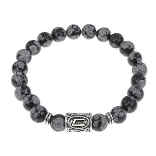 Стрейч-браслет из натурального камня снежный обсидиан с нанесённой руной Уруз.