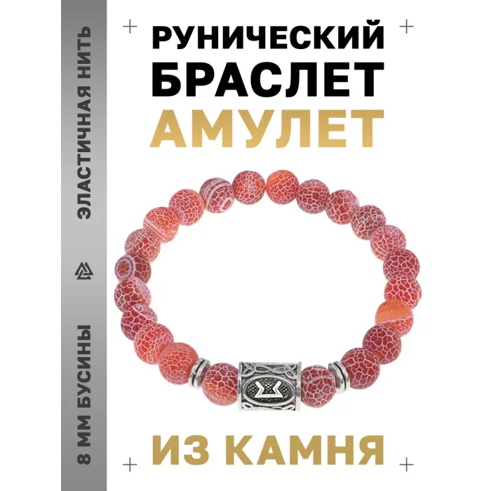 Стрейч-браслет из натурального африканского агата с нанесённой руной Перт.