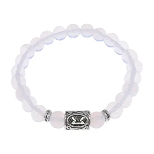 Браслет с руной Перт и синтетическим камнем Лунный камень.