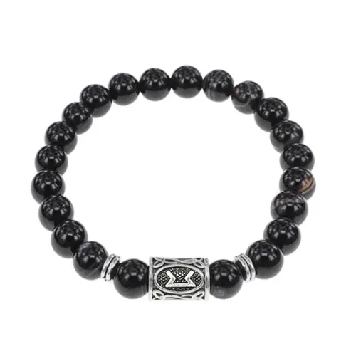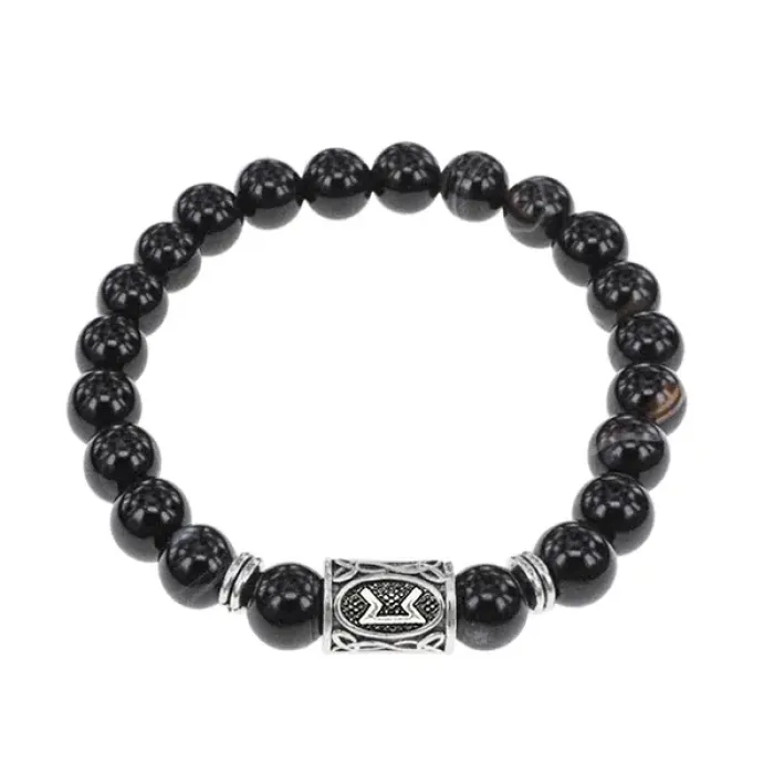 Браслет с руной Перт и нат.камнем Черный агат BSRD-14-23