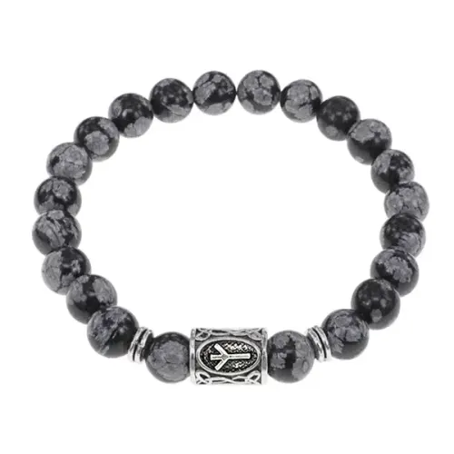 Стрейч-браслет с руной Альгиз, выполненный из натурального снежного обсидиана.