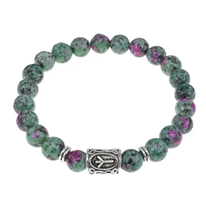 Браслет с руной Альгиз и синтетическим камнем Цоизит BSRD-16-22