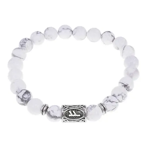 Браслет-оберег из натурального камня кахолонг с символикой руны Феху.