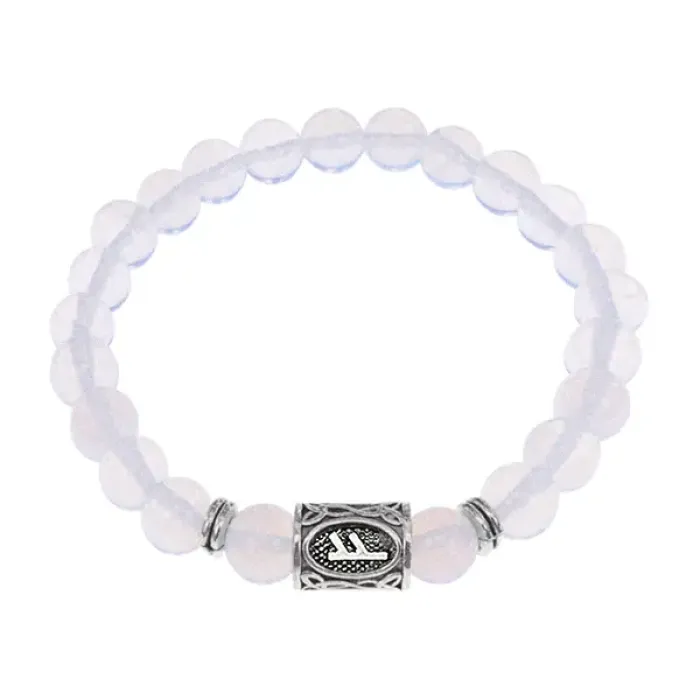 Браслет с руной Феху и синт.камнем Лунный камень BSRD-17-11
