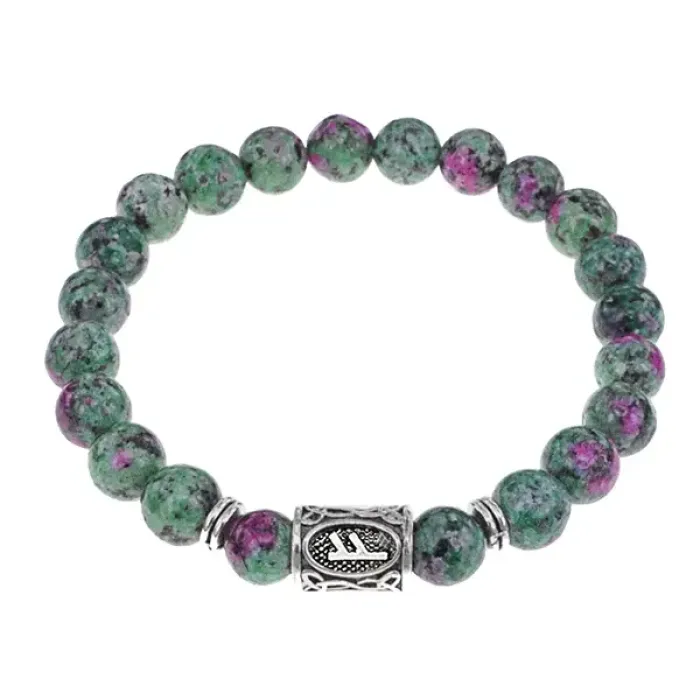 Браслет с руной Феху и синт.камнем Цоизит BSRD-17-22