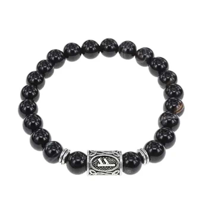 Браслет с руной Феху и нат.камнем Черный агат BSRD-17-23