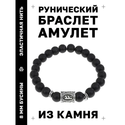 Стрейч-браслет с символикой руны Феху и синтетическим камнем шунгит.