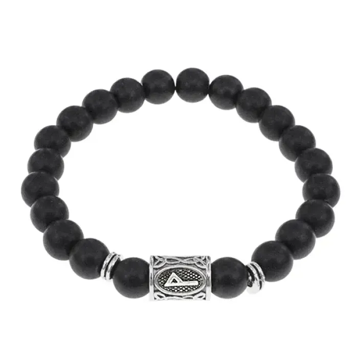 Стрейч-браслет из синтетического шунгита с руной Вуньо.