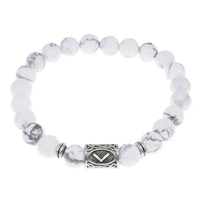 Рунический стрейч-браслет из натурального камня кахолонг с символом руны Кеназ.