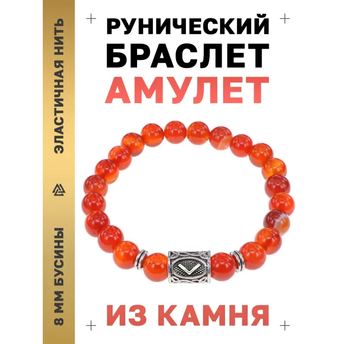 Стрейч-браслет с руной Кеназ и бусиной из натурального сердолика.