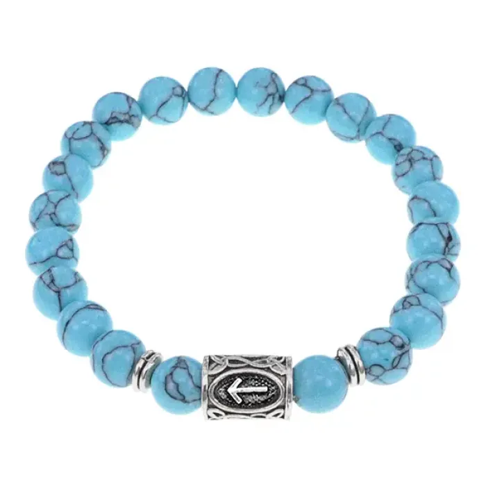 Браслет с руной Тейваз и синт.камнем Бирюза BSRD-20-05