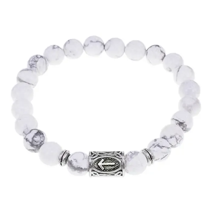 Браслет из натурального камня кахолонг с подвеской в виде руны Тейваз.