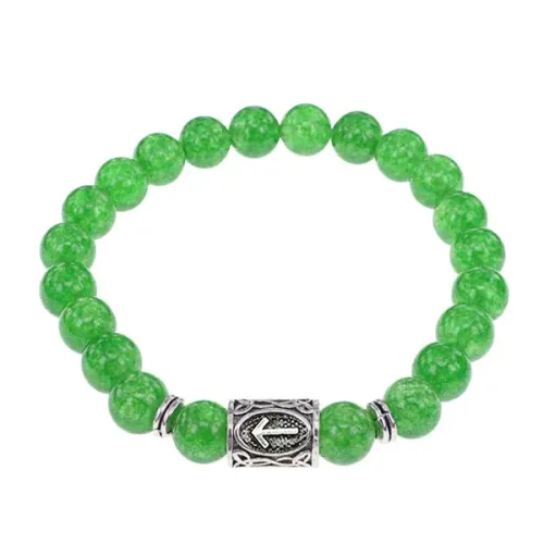Стрейч-браслет с руной Тейваз и бусинами из натурального нефрита.