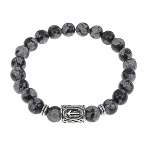 Стрейч-браслет с руной Тейваз и натуральным камнем снежный обсидиан.