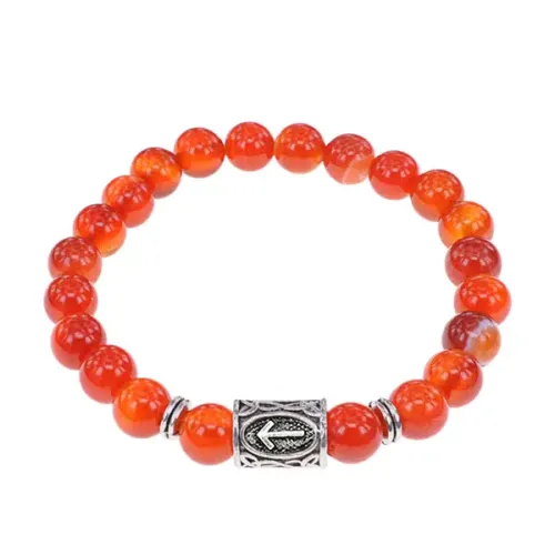 Браслет-сувенир из натурального сердолика с символом руны Тейваз.