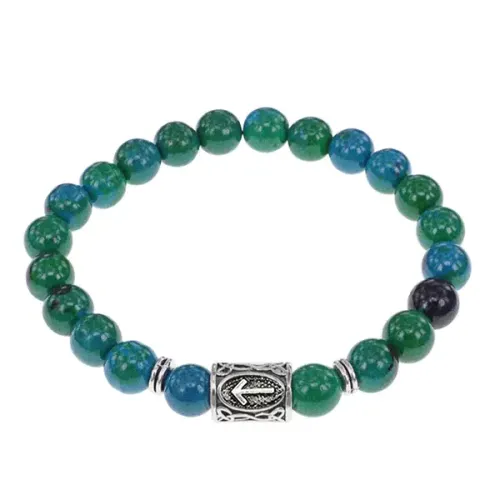 Стрейч-браслет с руной Тейваз и синтетическим камнем хризоколла.