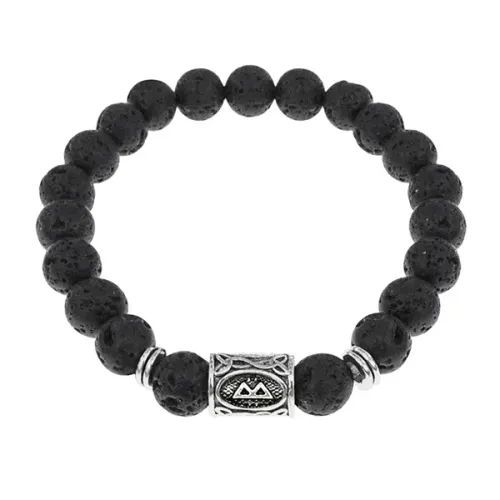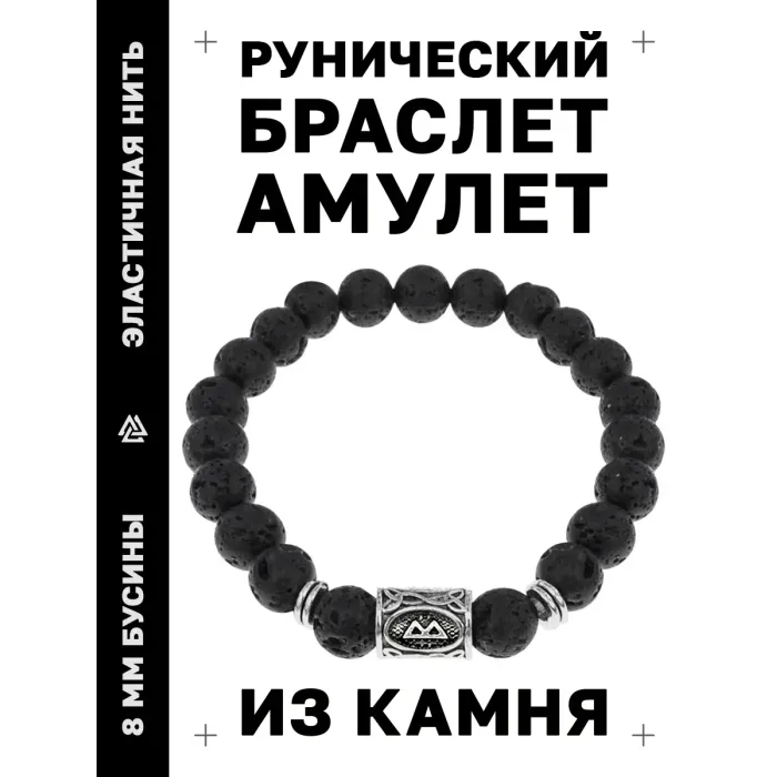Рунический стрейч-браслет из натурального камня лавы с символом Беркана.