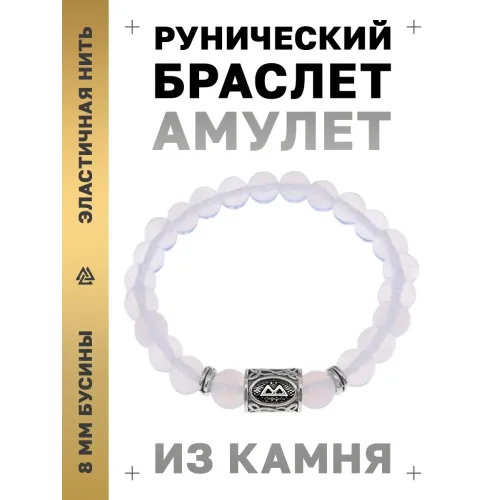 Браслет с руной Беркана и синт.камнем Лунный камень BSRD-21-11