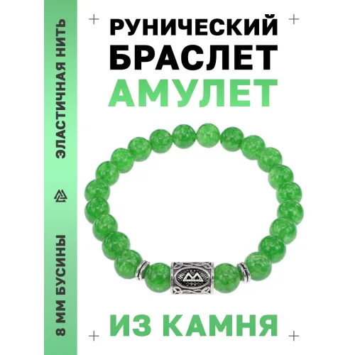 Браслет с руной Беркана и нат. камнем Нефрит BSRD-21-13