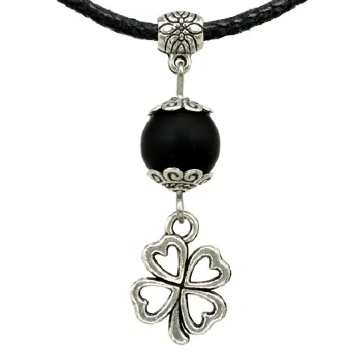 Амулет На удачу (клевер) с синтетическим камнем шунгит, цвет серебряный MKA006-2