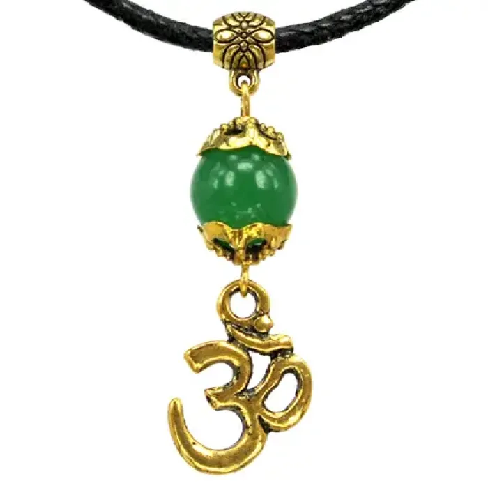 Амулет Ом с натуральным камнем нефрит, цвет золот. MKA007-1