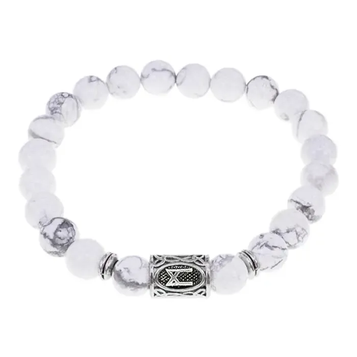 Стрейч-браслет с руной Манназ, выполненный из натурального камня кахолонг.