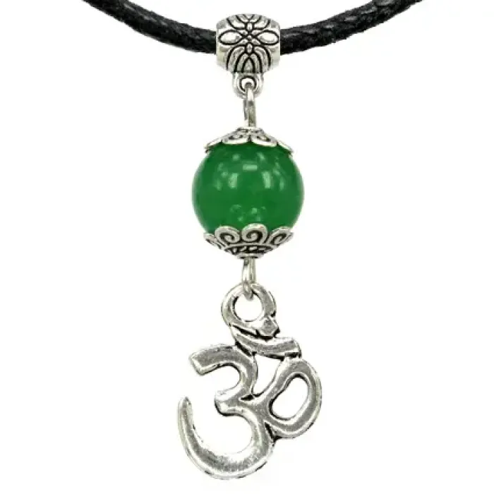 Амулет Ом с натуральным камнем нефрит, цвет серебр. MKA007-2