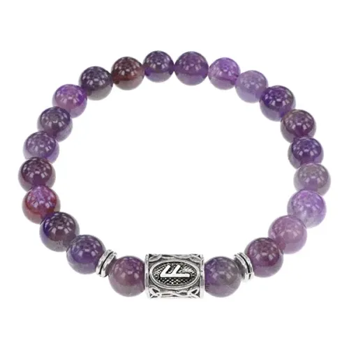Стрейч-браслет с руной Ансуз и бусинами из натурального аметиста.