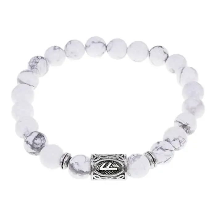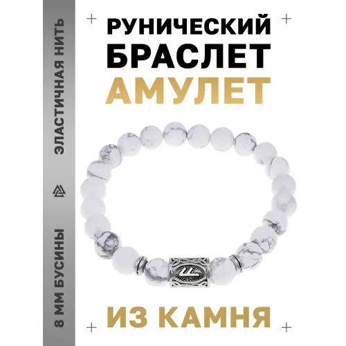 Стрейч-браслет из натурального камня кахолонг с символом руны Ансуз.