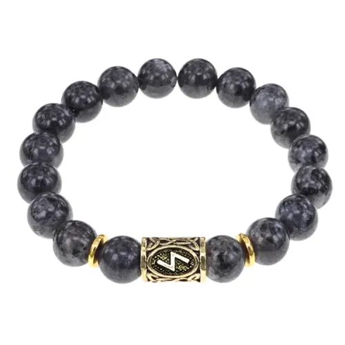 Стрейч-браслет с руной Соулу и бусиной из натурального лабрадора.