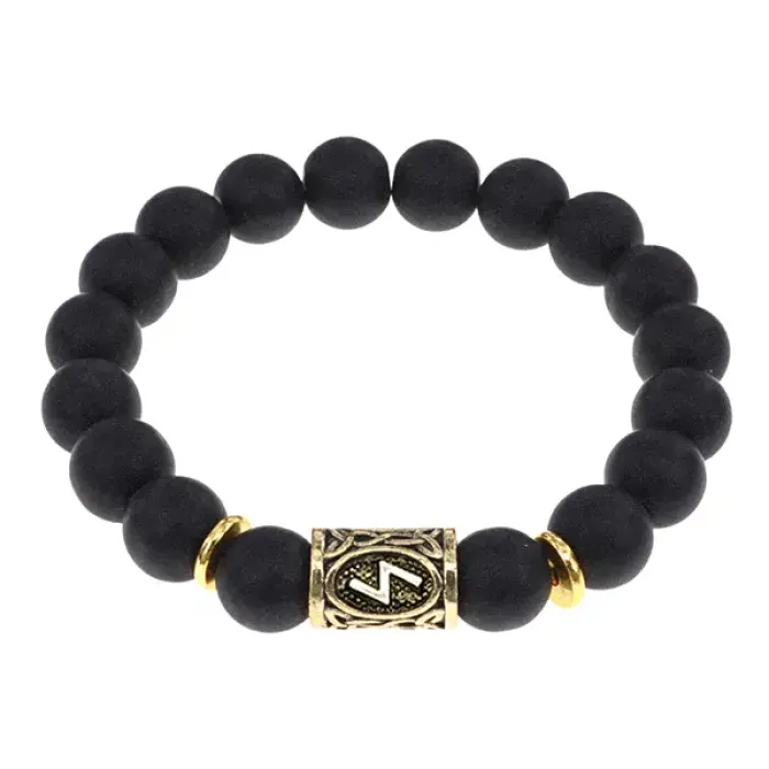 Браслет с руной Соулу и синт.камнем Шунгит BSRF-01-24