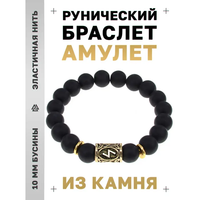 Стрейч-браслет с руной Соулу и бусинами из синтетического шунгита.