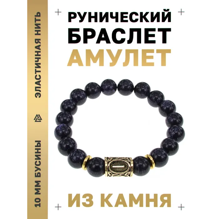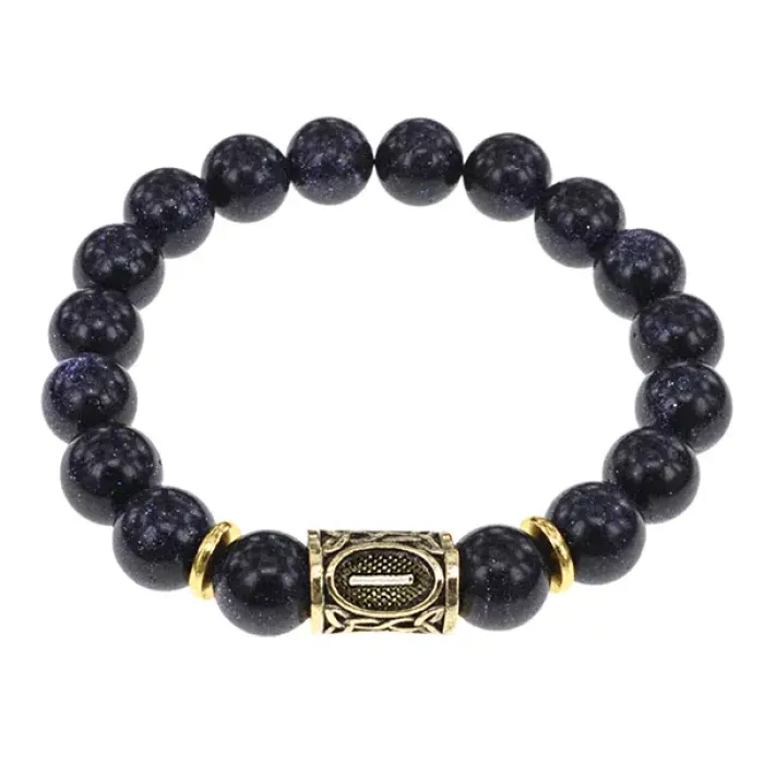 Браслет с руной Иса и синт.камнем Синий авантюрин BSRF-02-02