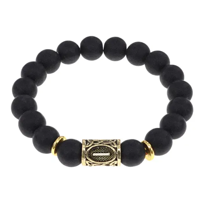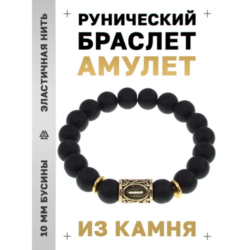 Стрейч-браслет с дизайном руны Иса и синтетическим камнем шунгит.